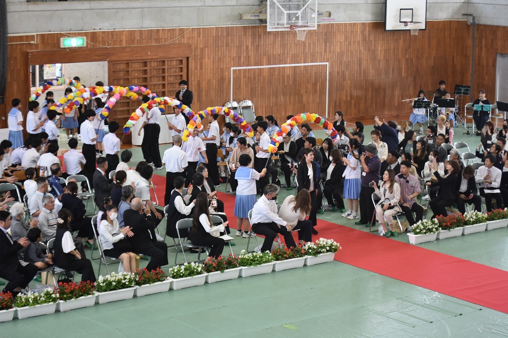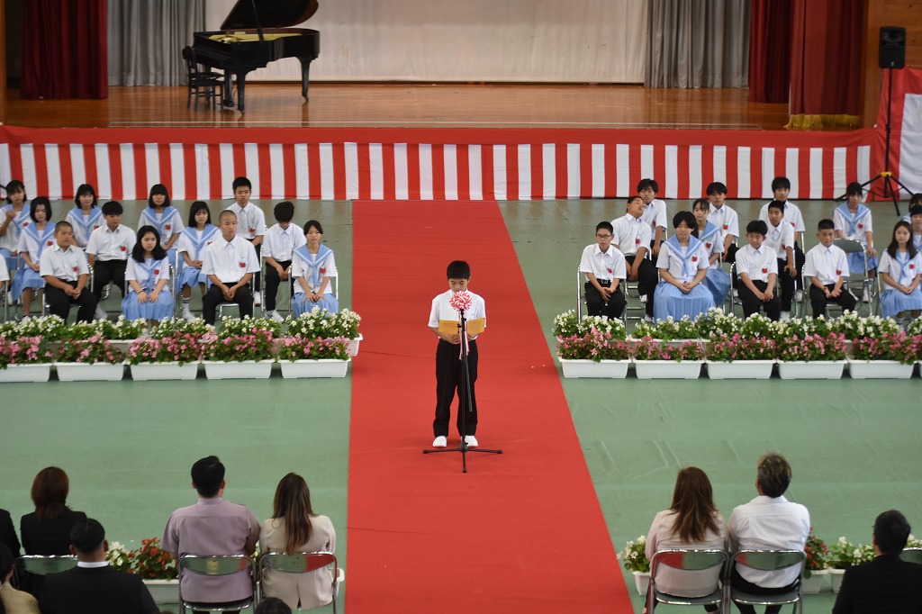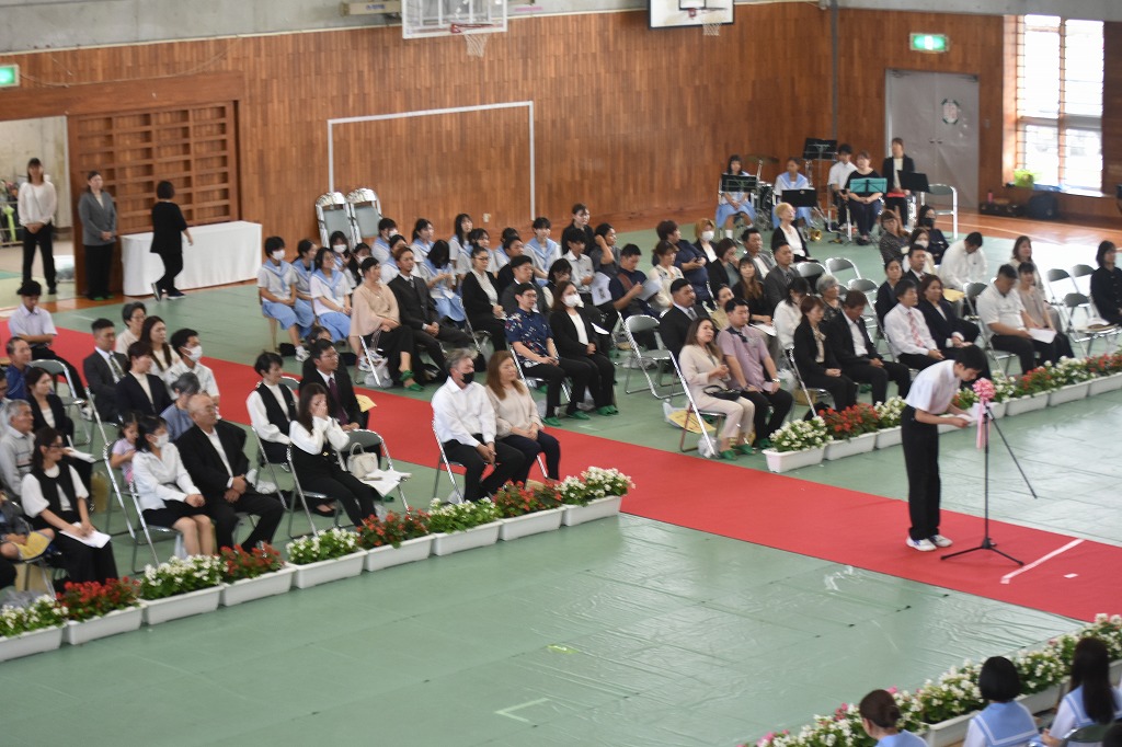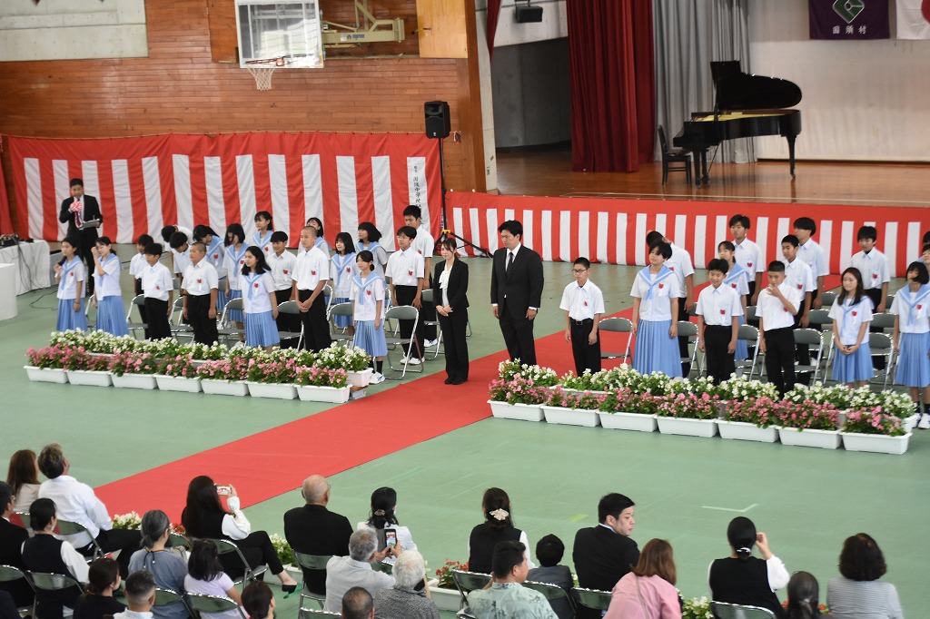去る4月9日〈木〉に本校体育館にて令和8年度第79回入学式を挙行致しました。国頭村長 知花靖様始め、多くの教育関係者、保護者参列の下、38名の新入生が元気に入場し、入学式を行ないました。新入生は2クラスでスタートします。保護者の皆さまも多感な時期を迎える中学時代、いろいろ大変なこともあるかと思いますが、子どもの自立、独り立ちに向けて家庭と学校が連携することで、成長を促していきましょう。